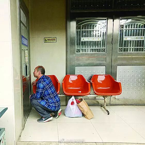 当日下午,记者来到现场核实情况。这个制证窗口是由一扇铁门改造而成,铁门中间部分,有一个长约20厘米的正方形窗口,距离地面约80厘米左右。在铁门外,设有一排橘黄色塑料连座,共3个座位,但座位却不是面向办证窗口。办证人坐下来办证时,必须扭转身体,或直接蹲在地上咨询。