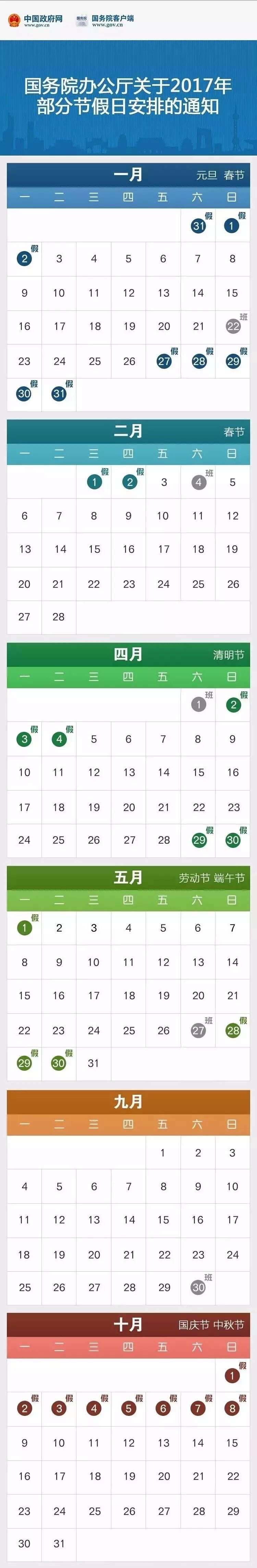 2017年五一、端午、中秋、国庆,最权威的放假通知在此,还不赶快收藏!