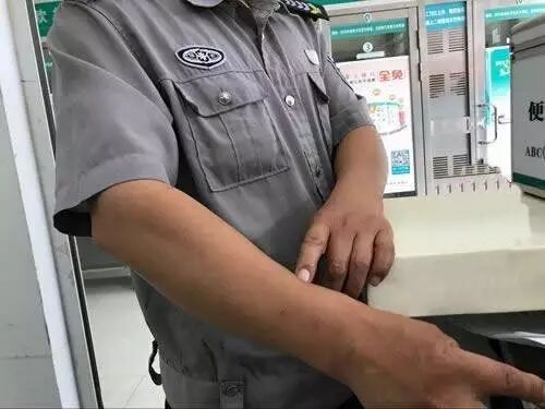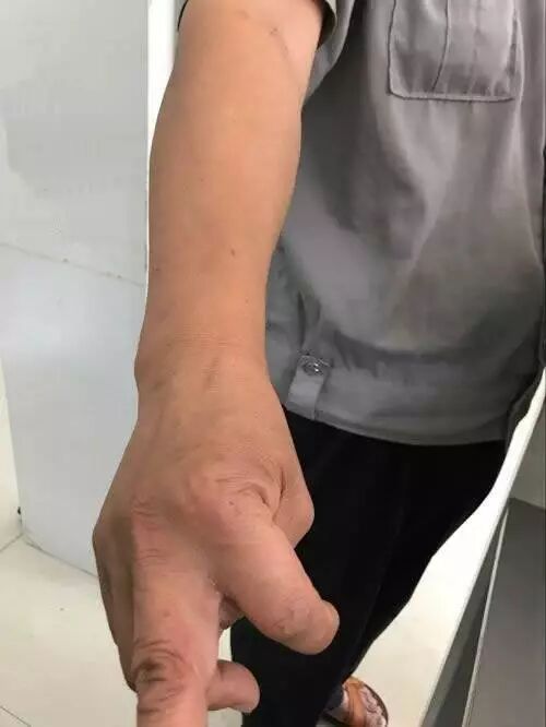 两人将这名女子守住,她一会儿砸东西,一会儿又打顾客,一会儿笑,一会儿哭。记者看到,蔡师傅的手、手臂上有多处抓伤。