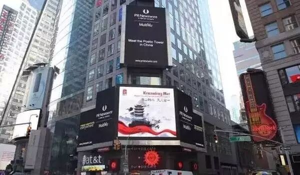 2016年3月5日,一幅中国风的水墨黄鹤楼景区宣传画以每隔3分钟出现15秒的频率,在时代广场放映了一整天。宣传画上除了写实的黄鹤楼和写意的黄鹤楼构建了画面主体,还有英文“知道我,你就是中国通”。