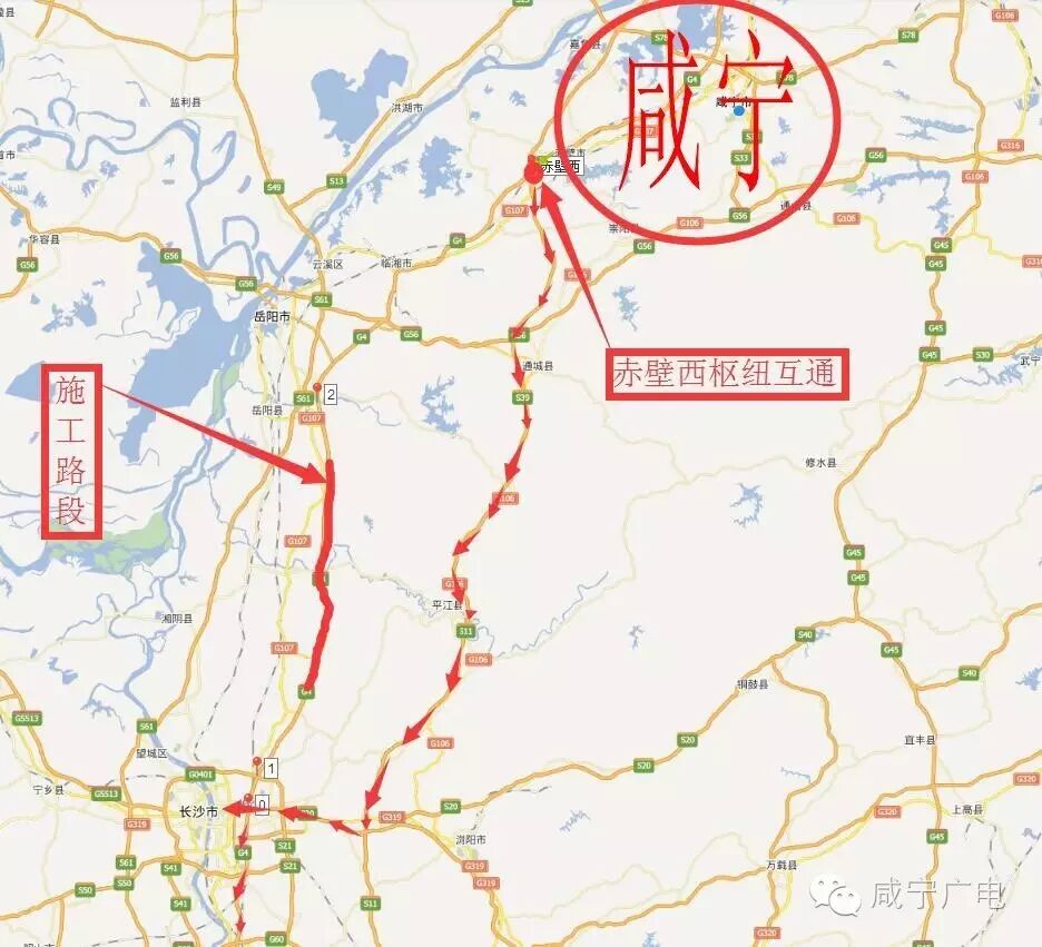 南下:可走赤壁西枢纽互通 →转G4E湖北段→S11平汝高速→枫浆桥互通→转S20长浏高速西行→长沙