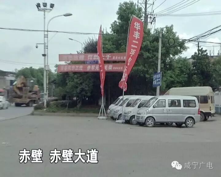 在赤壁市赤壁大道,社区和商户的宣传条幅直接挂在路边