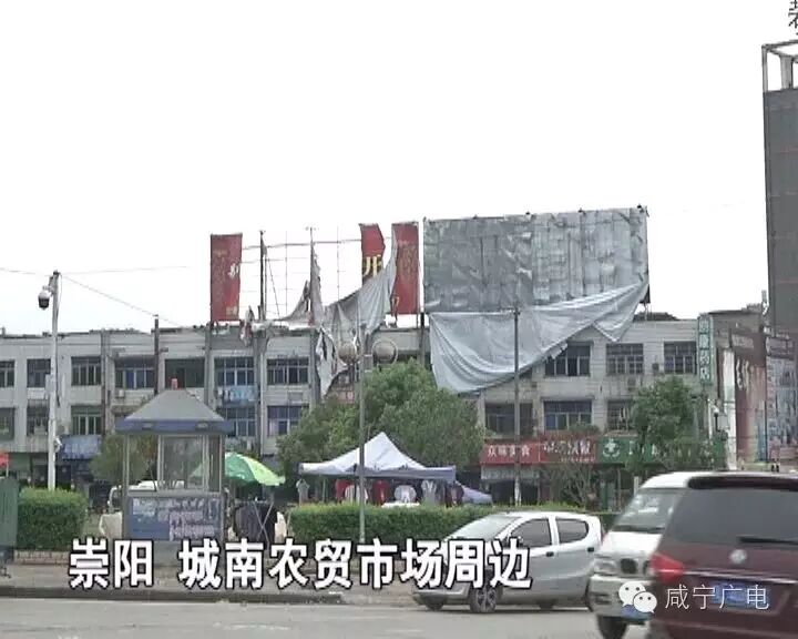 在崇阳县城南农贸市场周边有处破烂不堪的违规广告牌