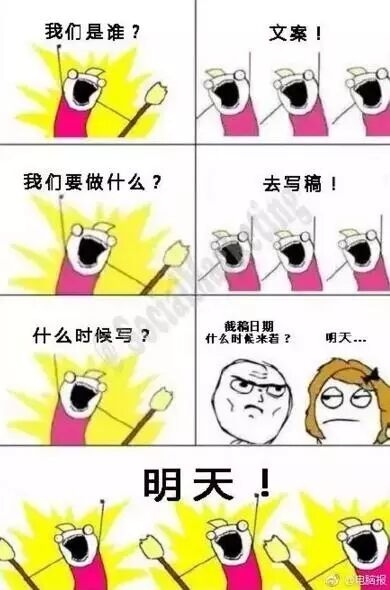 在国外,这组图片可以追溯到2012年,而国内早在2013年就已经出现该组漫画,只是配文不同,主要在暴走漫画等网站传播。