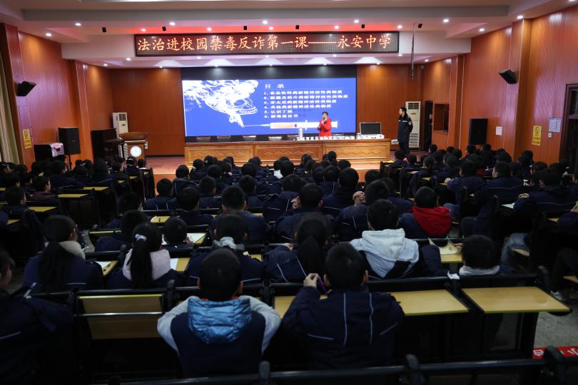 咸安区永安中学:开学第一课 普法禁毒进校园