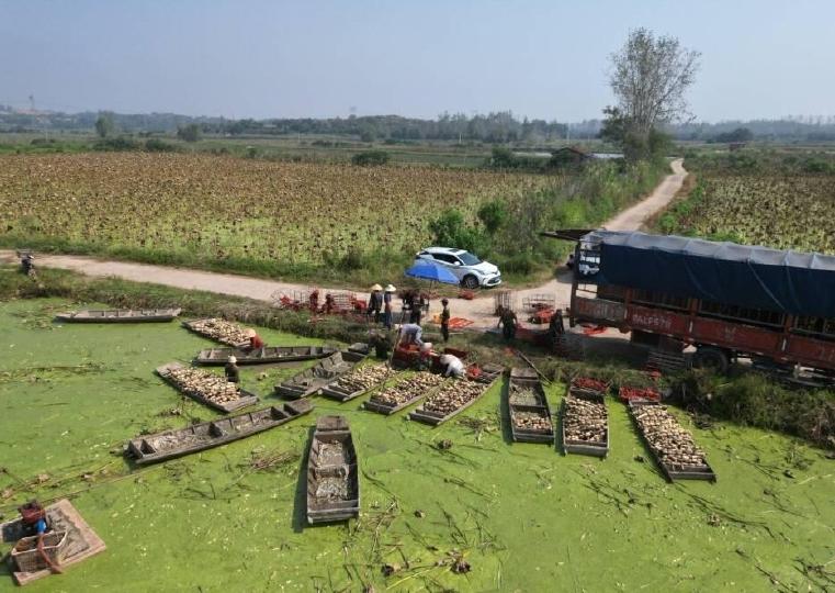 嘉鱼:陆溪镇藕塘村泥里“淘金”喜丰收 莲藕“链”起乡村振兴“致富田”