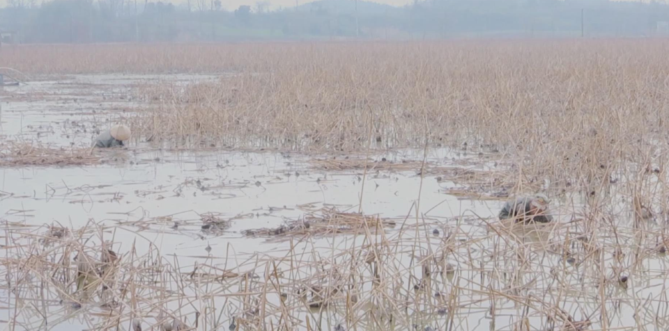嘉鱼:冬日藕塘采挖忙 陆溪野藕喜丰收